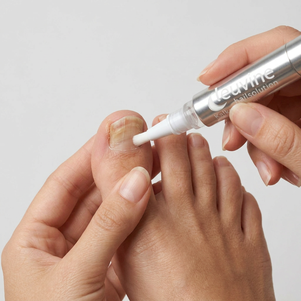 Breng ’s avonds een dun laagje aan op de schone, droge nagel. Gebruik de applicator voor een precieze en hygiënische verdeling over de hele nagel en nagelriem.